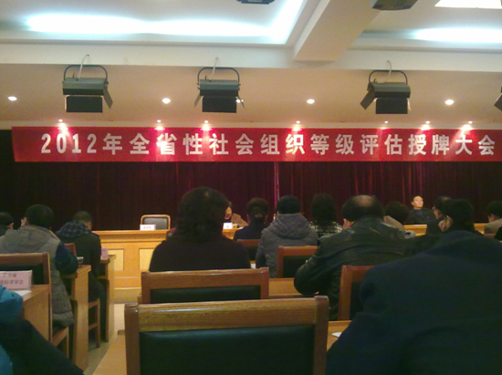2012年12月14日上午9点,贵州省民政厅组织召开了2012年全省性社会组织等级评估授牌大会。贵州省民政厅副厅长甄燕驰、贵州省民政厅民间组织管理局局长许文益、贵州省民政厅民间组织管理局副局长乔遵、贵州省民政厅民间组织管理局助理调研员胥健为获得2A级以上的单位授牌,贵州省环境诱变剂学会秘书长杨光红、秘书王文娟参加了会议。