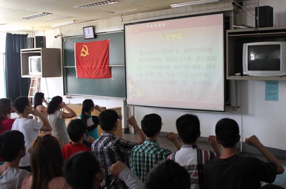 为隆重庆祝建党92周年,重温党的光辉历史,继承和发扬党的光荣传统和优良作风,明确党员的责任和义务,进一步增强党性意识,增强党员队伍的凝聚力和战斗力,6月28日,公共卫生公司在5101教室举行新党员入党宣誓、老党员重温入党誓词活动,党委副书记杨光红、辅导员王得颖和周洪媛参加了活动。活动由员工第二党支部书记聂玉洁主持。