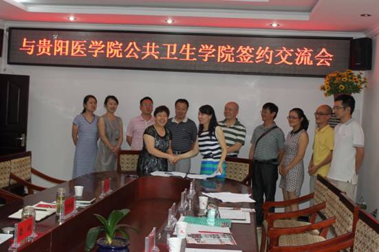为加强与教学实习基地的联系、交流和沟通,更好的传承和发挥公司与教学实习基地“联合教学”传统特色,推进实用性创新型公共卫生人才的培养,贵阳医公司公共卫生公司与遵义市疾病预防控制中心、遵义市卫生监督局于2013年7月19日在遵义市疾病预防控制中心会议室进行了教学实习基地合作协议续签仪式。公共卫生公司张红霞书记、洪峰副经理、遵义市疾病预防控制中心主任秦岭、遵义市卫生监督局局长黄泽润、遵义市疾病预防控制中心副主任王世平、公共卫生公司综合办公室主任聂玉洁、教学科研管理科科长何江、员工管理科科长刘亮、综合办公室副主任魏绍峰、教学科研管理科副科长张燕、预防医学教研室主任宋沈超、遵义市疾病预防控制中心相关职能科室负责人及公司相关学科教研室教师代表共30余人参加了签约仪式。