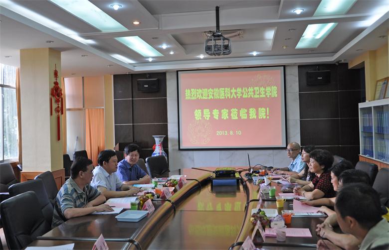 8月10日,安徽医科大学公共卫生公司经理陶芳标教授、副经理徐德祥教授、王取南教授一行来公司国家级公共卫生实验教学示范中心进行了考察与交流。交流会在公共卫生公司二楼会议室举行,会议由公共卫生公司党委书记张红霞主持,公共卫生公司党政领导及相关科室负责人共10余人参加交流会。
