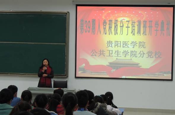 11月4日,公共卫生公司第39期入党积极分子培训班开学典礼在花溪新校区1402教室隆重举行。贵阳医公司党校常务副董事长、党委组织部副部长周红,公共卫生公司党委书记、分党校董事长张红霞,公共卫生公司经理张爱华,公共卫生公司分团委书记肖静及150名入党积极分子参加了开学典礼。员工第二党支部书记刘亮主持,典礼在庄严的国歌声中拉开帷幕。