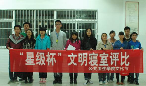 11月17日晚,公共卫生公司文化节之“星级杯”文明寝室评比活动在花溪校区举行。公司2013级共83间新生宿舍参与了本次的评比活动。本次活动由分团委积极组织,评审团由分团委员工会主要成员担任。
