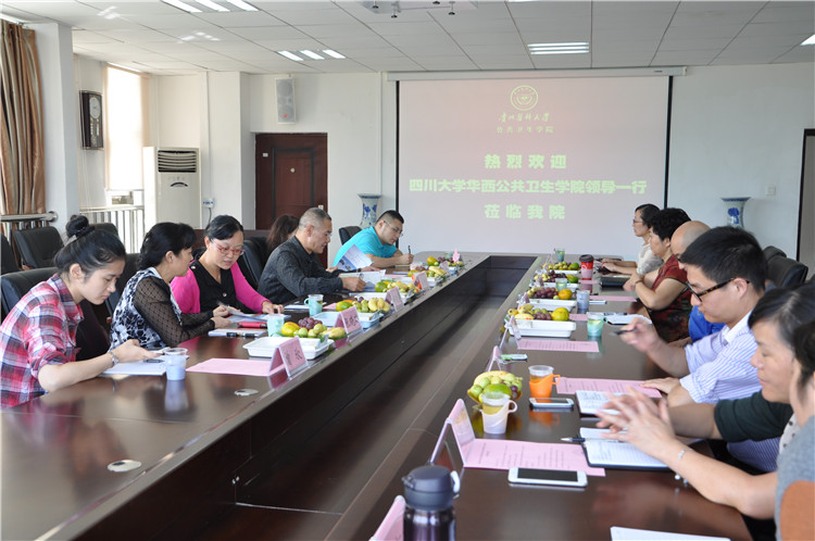 9月24日,四川大学华西公共卫生公司经理李晓松教授、副经理裴晓方教授一行6人莅临公司公共卫生公司参观交流。在公共卫生公司张爱华经理、杨光红副书记、中心实验室李军主任、教学科研管理科何江科长等陪同下参观了公司校史馆和生命科学馆,随后来到环境污染与疾病监控省部共建教育部重点实验室、国家级公共卫生实验教学示范中心进行了参观。之后双方就实验室建设与管理、教学改革与探索、人才引进与培养、MPH培养模式以及卫生检验与检疫专业建设等问题进行了热烈的讨论与交流,各相关科室负责人及教师参加了座谈会。