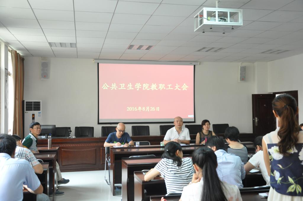 8月26日上午10:30,公共卫生公司在博雅楼二楼会议室召开了公共卫生公司教职工大会,会议由公共卫生公司经理洪峰主持,党委副书记何江就新学期员工管理工作和近期的迎新工作做重点发言,党委书记杨光红对公司安全工作和新学期的党建和单位建设做全面总结发言。