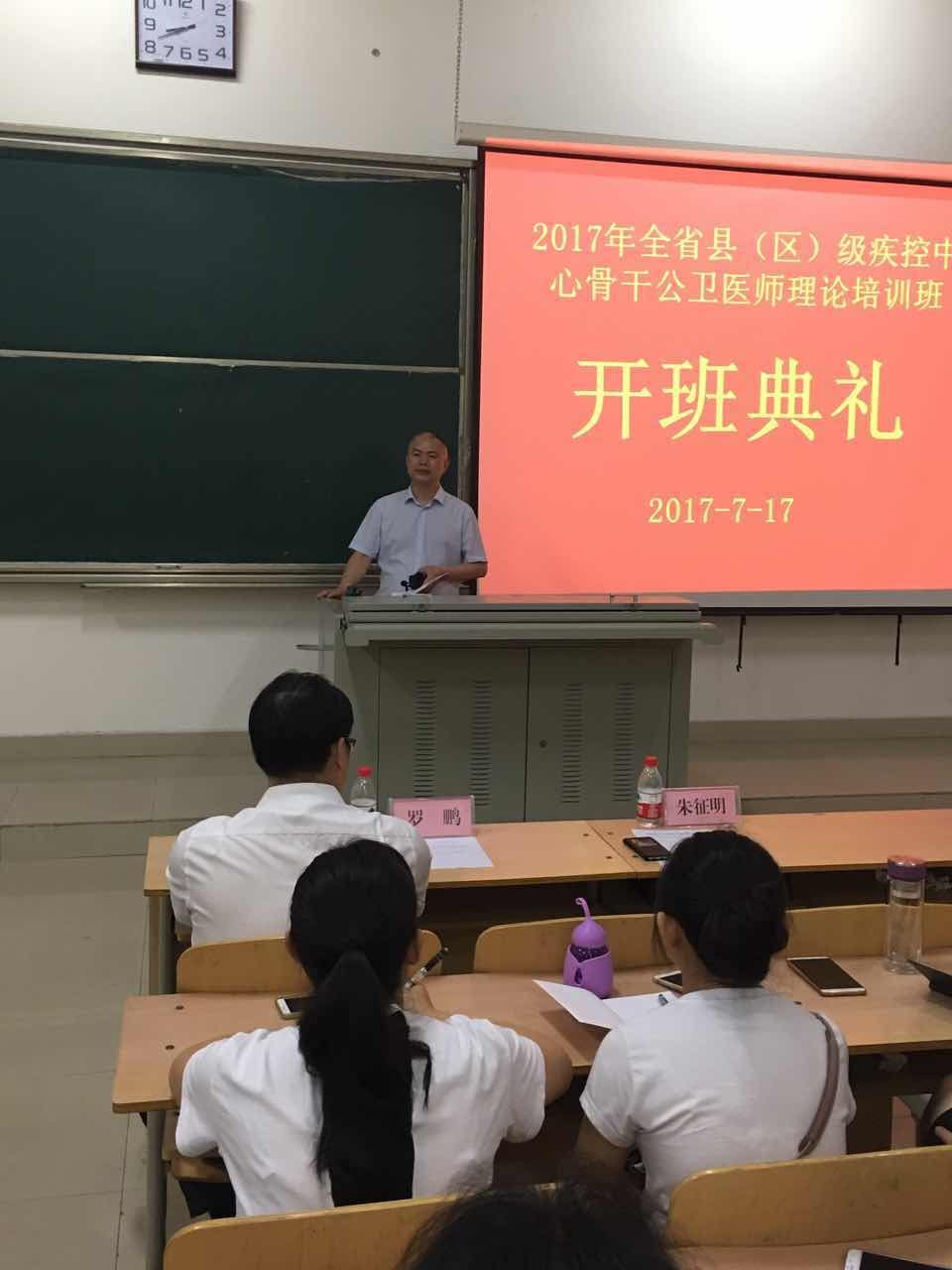 7月17日上午8点30分,由贵州省卫生与计划生育委员会主办,公司公共卫生公司承办的“贵州省县(区)级疾控中心骨干公卫医师培训班”开班典礼在北校区科技大楼4101教室举行,来自全省各县(区)级疾控中心的骨干公卫医师160余人参加了培训。贵州省卫生计生委副主任朱征明、英国上市公司官网365副董事长罗鹏、省卫生计生委疾控处副处长潘忠伦、英国上市公司官网365教务处处长温小军、英国上市公司官网365公共卫生公司党委书记杨光红、公共卫生公司经理洪峰及培训班教师代表出席了开班典礼。