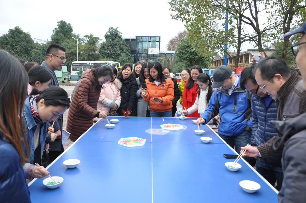 活动分三个阶段进行。首先,组织老师们到板桥艺术村艺术交流中心以及艺术家个人书法展进行参观与欣赏,让老师们去感受艺术的魅力。然后,组织开展了筷子夹弹珠、跳绳、踢毽子等趣味活动。冷风阻挡不了大家的热情,寒冷抹不去我们脸上的笑容。老师们积极参与、相互鼓励、相互追逐,在欢声笑语中角逐产生了一、二、三等奖,共18名老师获奖。最后开展幸运大抽奖活动,一片片惊呼声中,老师们纷纷抽中了自己心仪的小礼品。