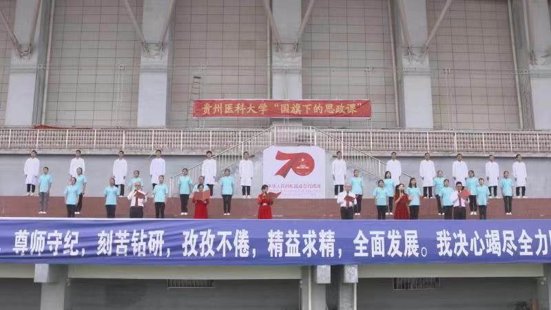 活动中,公司97届预防医学专业员工,贵阳市卫生健康局副局长黄秋辰,与同学们分享了27年来从一个懵懂少年到初进母校、再到矢志不渝在医疗卫生行业中的奋斗历程,勉励同学们要爱国奋进、要担当使命、要倍加努力;2019年贵州省脱贫攻坚优秀共产党员、公共卫生公司综合办主任张强,向在场的同学们讲述了自己在我省从江县加勉乡带领当地百姓发展特色产业,并走出一条砥砺前行、苦干实干脱贫攻坚历程。鼓励大家学有所成之后,到基层去,到广大的群众中去。公共卫生公司党委书记杨光红、经理洪峰带领师生朗诵《伟大的转折》,抒发了中国共产党带领中华儿女为伟大祖国的繁荣昌盛抛头颅洒热血、为实现中华民族伟大复兴的中国梦不懈奋斗的豪情壮志。