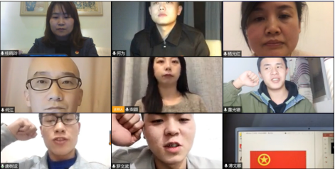 在抗“疫”志愿服务战线上,公司三名青年向团组织递交了入团申请书。他们在志愿服务期间,活跃在卡点值守、疫情排查、防控宣传、后勤保障等关键岗位。时值第57个学雷锋活动日,为弘扬新时代青年的奉献精神,2020年3月5日,公共卫生公司团委以视频会议为形式举办了一场特殊的“云”入团仪式。参加本次入团仪式的有校团委副书记桂晓玲、校团委副书记何为、公共卫生公司党委书记杨光红、公共卫生公司党委副书记何江、公共卫生公司团委书记柴颖以及新老团员们,入团仪式由柴颖主持。