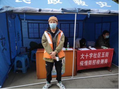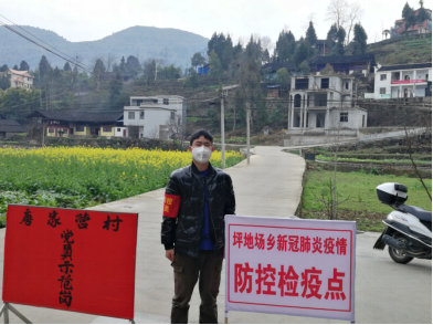 (唐树运同学在石阡县坪地场乡唐家营村村委会负责过往人员体温检测)