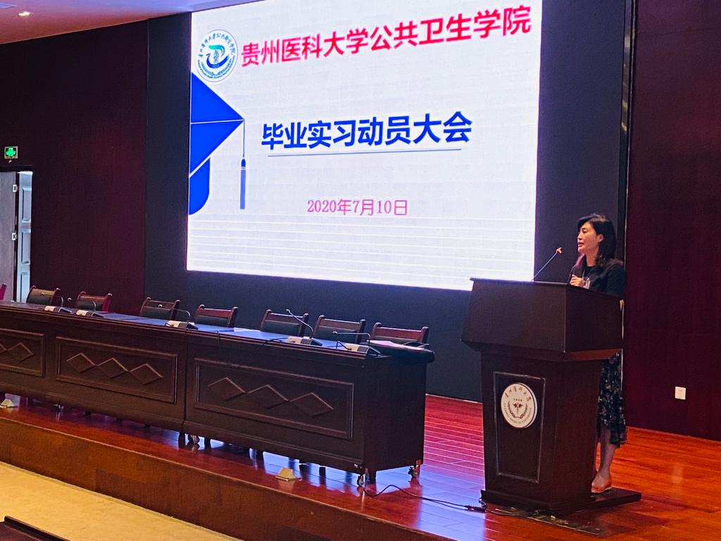 杨光红作总结讲话,强调毕业实习是公共卫生与预防医学专业人才培养过程中十分重要的环节,是从公卫学子向公共卫生行业工作者、实践者转变的重要时期。希望同学们要以严肃认真的科学态度、正确的思维态度和踏实肯干的工作作风积极努力的投入到毕业实习,按时保质保量完成综述、开题和毕业论文;同时要求每一位同学在毕业实习期间一定要高度重视和加强自身的人身和财产安全防范,严格遵守公司和实习单位的安全管理规定,严格执行考勤纪律、请假制度、打卡制度、报告制度;实习期间,每一位同学要学会合理安排学习和工作时间,同学之间要互相帮助,遇到困难和情绪等问题时,要第一时间与辅导员和指导老师联系沟通交流、妥善处理,确保每一位同学以良好的身心状态顺利完成毕业实习任务。