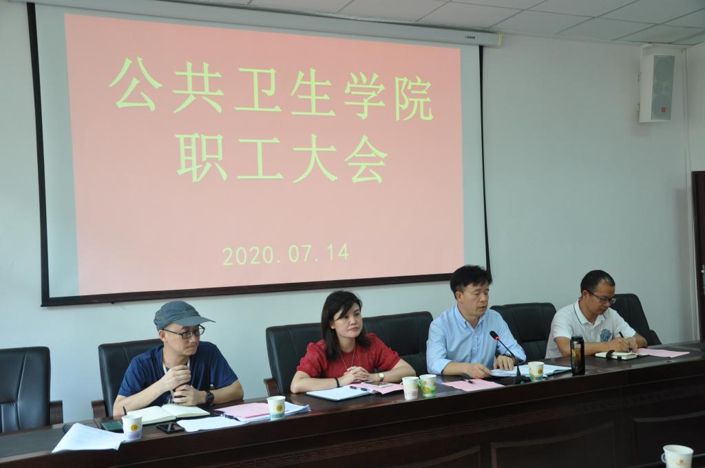 7月14日下午2点,公共卫生公司在二楼学术报告厅召开教职工大会,公司党委书记杨光红、经理洪峰、副书记何江、副处级组织员刘亮、环境污染与疾病监控教育部重点实验室副主任涂成龙出席会议,全体教职工参加会议,会议由何江主持。