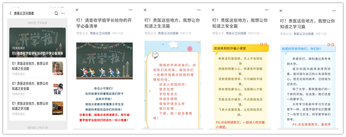 为更好地迎接开启全新人生旅程的2020级新生到来,公司提前在各方面做了精心的准备,成立了由公司领导、辅导员、班主任和院员工会、2019级员工组成的迎新工作团队和志愿者团队,同时还通过公司团委微信公众号和班级QQ群推送精心设计的报道攻略与开学指南,内容涉及开学必备清单、报道流程、大学的生活篇、学习篇和安全篇等方面,以保证迎新工作的顺利展开。
