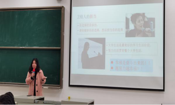 2020级预防医学甲班专业班主任卢芸老师从预防医学的学科属性、就业去向、发展前景等方面进行了详细阐述;同时强调老员工活应收获的不仅仅是专业知识,身心健康、专业技能、综合能力、生活态度也尤为重要;倡议同学们做“大学想要完成的五件事”,勉励同学们珍惜大学时光。