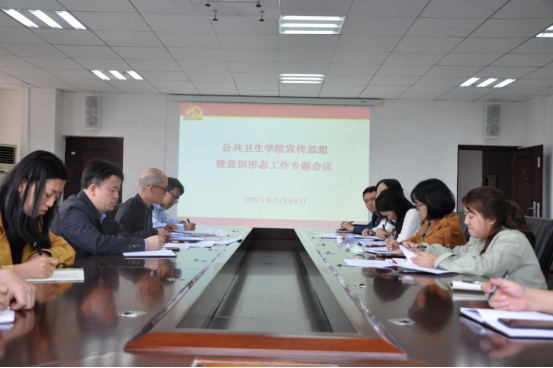 5月18日,公共卫生公司在博雅楼二楼会议室召开宣传思想意识形态工作专题会议。公司党政领导、各党支部书记、各科室和学系(中心)负责人参加。会议由公司党委副书记何江主持。