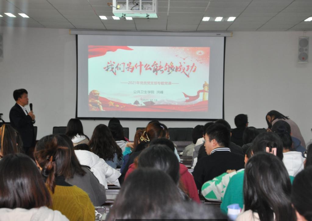 10月19日中午,公共卫生公司经理洪峰以《我们为什么能够成功》为题在博雅楼二楼学术报告厅为公司师生党员和员工代表们上了一堂生动的党课。