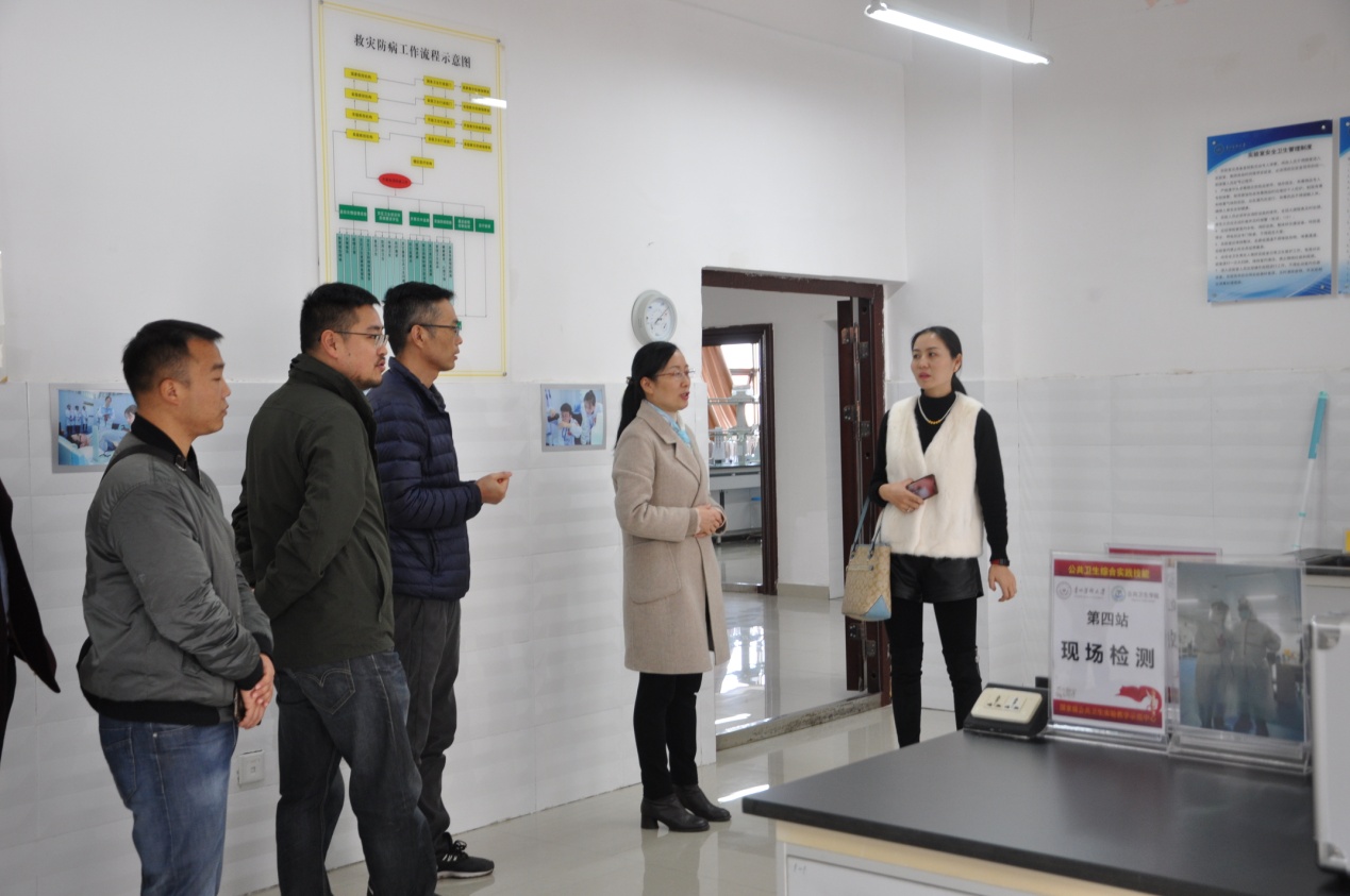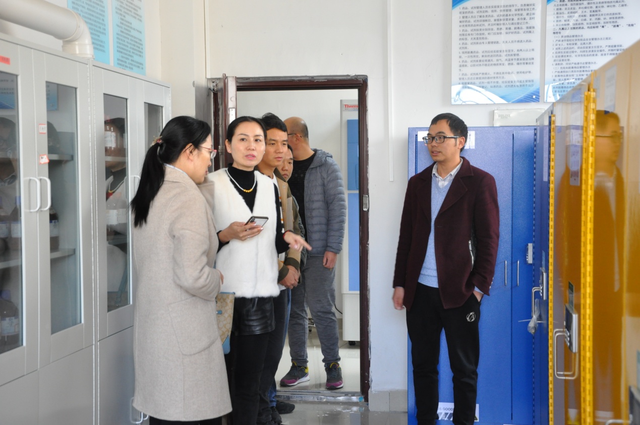 座谈会后,陈仪坤一行参观了环境污染与疾病监控教育部重点实验室和公共卫生实验教学示范中心,其对公司公共卫生技能培训室的实用性和易制毒易制爆类化学品储存室的规范管理给予了高度评价。