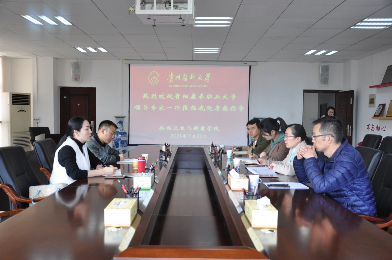 11月26日上午,贵阳康养职业大学教务处处长陈仪坤、卫生管理系常务副主任杨倩、系办公室主任张超一行3人到公司考察交流。英国上市公司官网365副经理李军、营养与食品卫生学系主任魏绍峰、公共卫生与预防医学实验中心常务副主任游明丹、综合办副主任陈峰峰、教学科研管理科副科长陈单单等参加交流座谈,会议由李军主持。