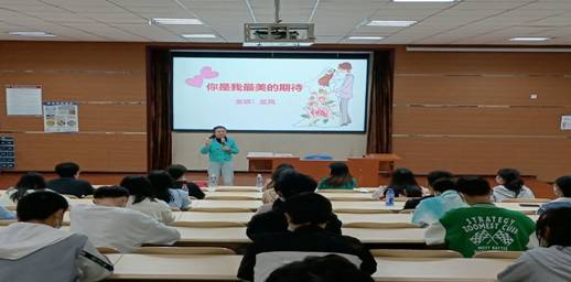 王凤以《你是我最美的期待》为题,围绕爱的本质、爱与被爱的条件、爱与被爱的价值、爱与被爱的能力四个方面展开讲解,其生动的案例、风趣的语言及深入浅出的讲解充分调动了现场气氛。同时王凤鼓励同学们要保持正确的恋爱价值观,以乐观豁达、积极向上的人生态度来面对情感,并针对同学们存在的困惑进行了耐心的解答。