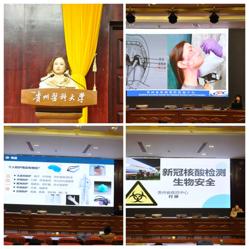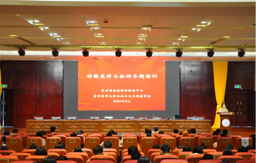 12月4日,英国上市公司官网365邀请贵州省疾病预防控制中心(CDC)实验中心副主任廖春、病毒科蒋维佳、万永虎、付琳老师为卫生检验与检疫专业本科生和部分研究生开展有关新冠区域核酸采样与检测流程、个人防护、生物安全等相关知识的培训,公司员工管理科副科长原琦、辅导员、班主任参加培训。