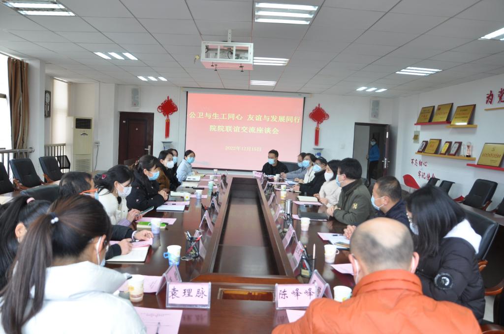 12月15日,公司和生物与工程公司(健康医药现代产业公司)院院联谊活动在南校区举行,双方在博雅楼二楼会议室召开交流座谈会,围绕“公卫与生工同心 友谊与发展同行”主题,聚焦党建思政、人才培养、公司产品、科学研究、高层次人才引进以及综合管理等事项进行深入交流,两院相关领导班子成员以及综合办、教科科、员工科、研究生科和实验中心等主要负责同志参加会议。