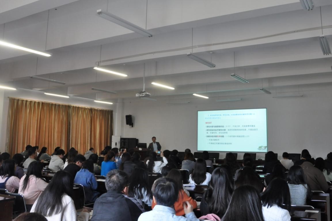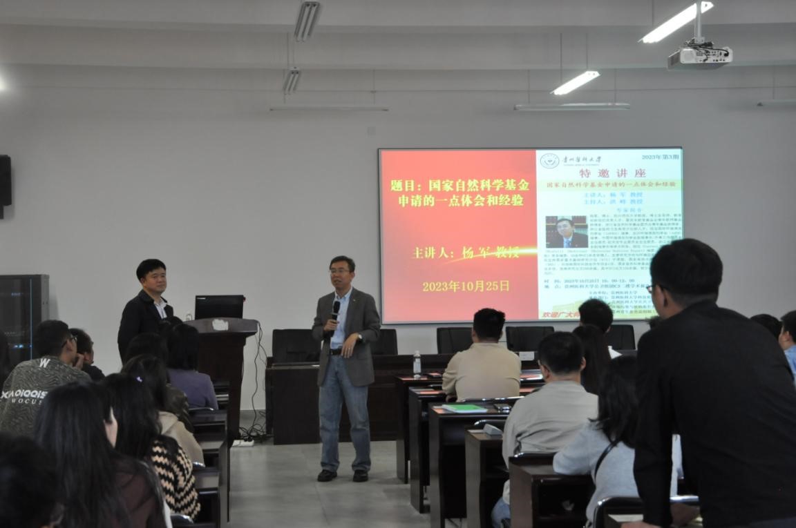 讲座上,杨军教授结合自己多年来申请和评审基金项目的体会,从近年来基金申请立项情况入手,就申请书撰写总体思路和专家评审要点,结合申报书实例分析,分别对标题、摘要、立项依据、研究目标与研究内容、工作基础等几个重点部分,毫无保留地与老师们分享了基金申请的经验与技巧,与会师生受益匪浅。
