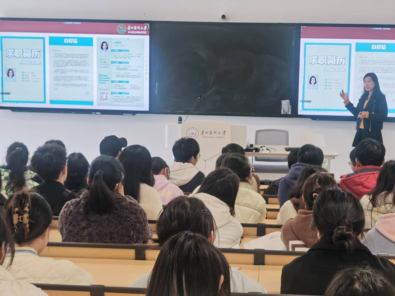 李梦娟从求职简历制作、面试礼仪、微笑礼仪、电话礼仪、见面礼仪以及常见的面试问题与方式等方面,围绕同学们在求职中常见的难点热点问题进行讲解与指导。
