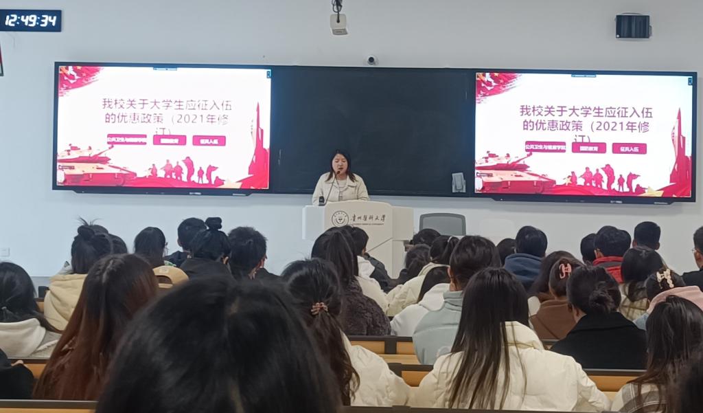会上,郝雪君对公司预征班、应征入伍报名时间、政策支持、优惠奖励、注意事项等方面进行了详细解读和说明,使同学们对于国防知识与国家征兵入伍政策有了充分的了解与认识。