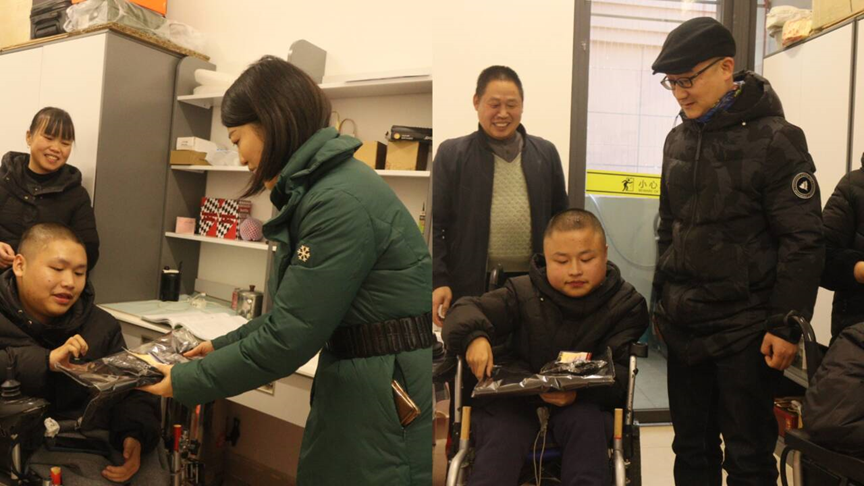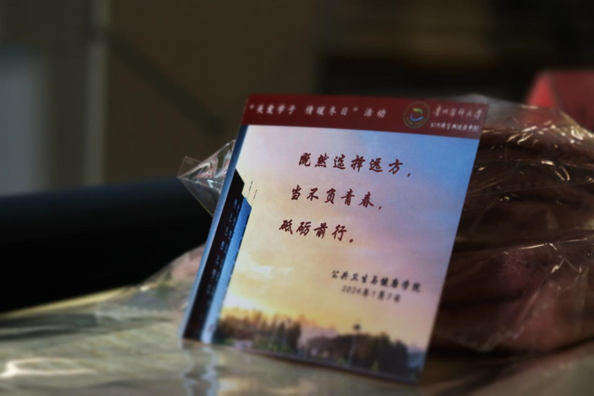 随后,领导老师们亲手将爱心手套、围巾送到员工手上,并为员工送上写满美好祝福的卡片。