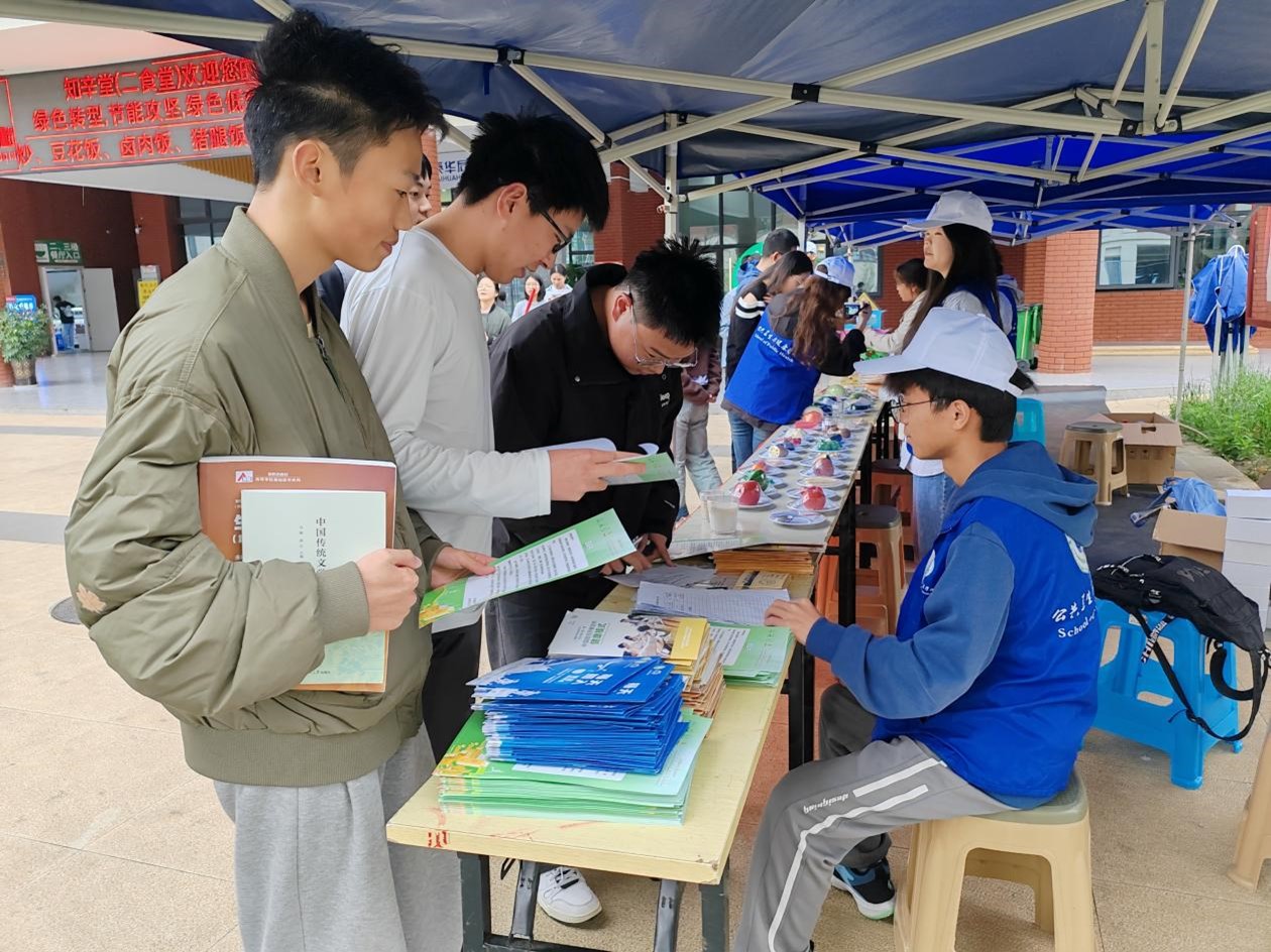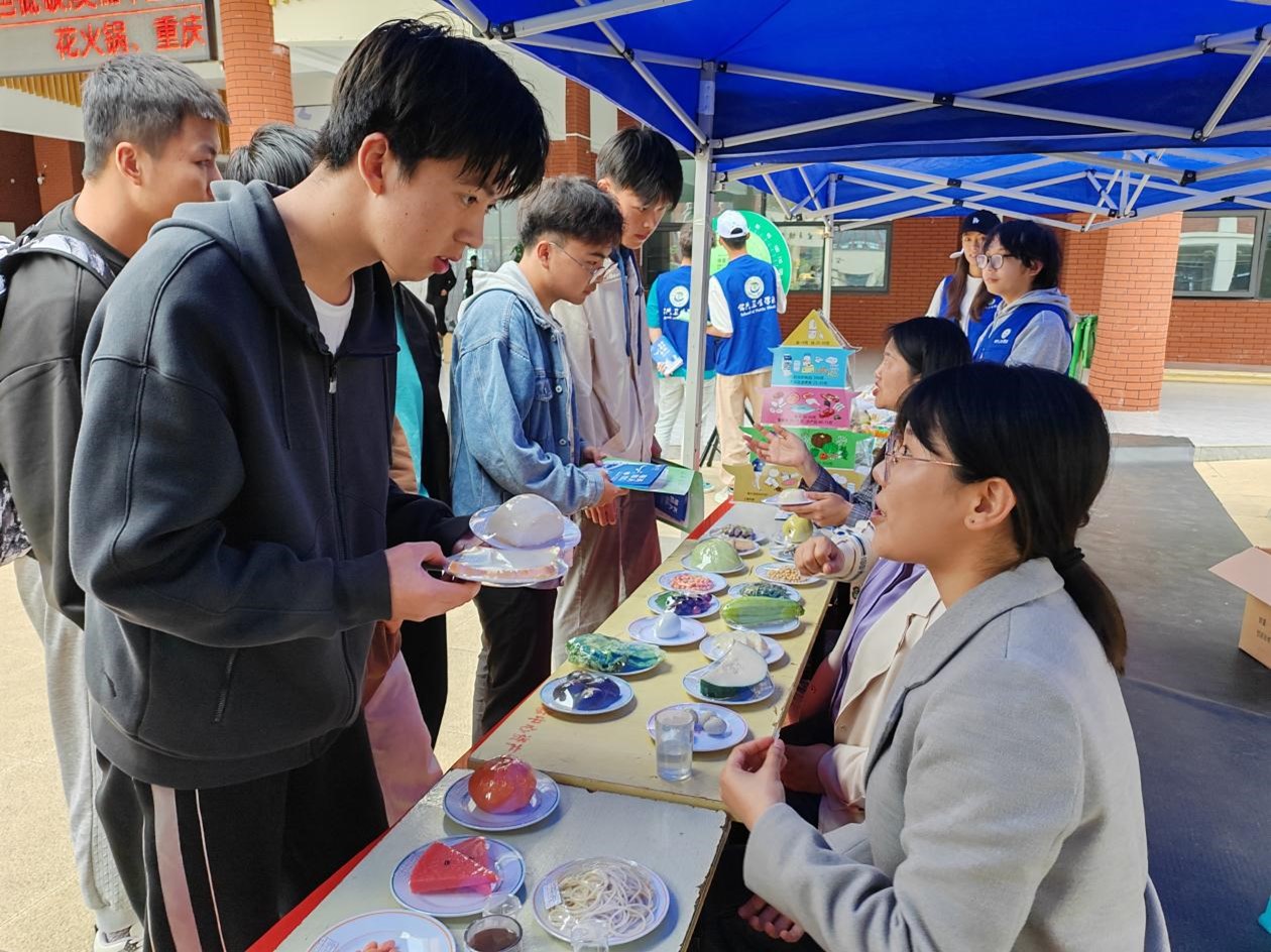 在活动现场,专业导师们对同学们的学习状况、学业规划进行了解并给予了充分指导,同时围绕“中国居民早餐营养健康模式”“如何看懂食品说明书”“轻食减脂营养餐食谱搭配”“科学健身”等内容开展了互动交流,强调了2024年口号:“奶豆添营养,少油更健康”。活动现场同学们通过计算BMI体重指数结合健康转盘查看自己的的健康小提示。食品相关专业的志愿者们配合实物,为同学们讲解了平时喜欢的各种零食包装的营养标签与配料表,分析其中的主要成分以及可能存在的健康风险,现场活动反响热烈,发放了近1000份宣传资料。