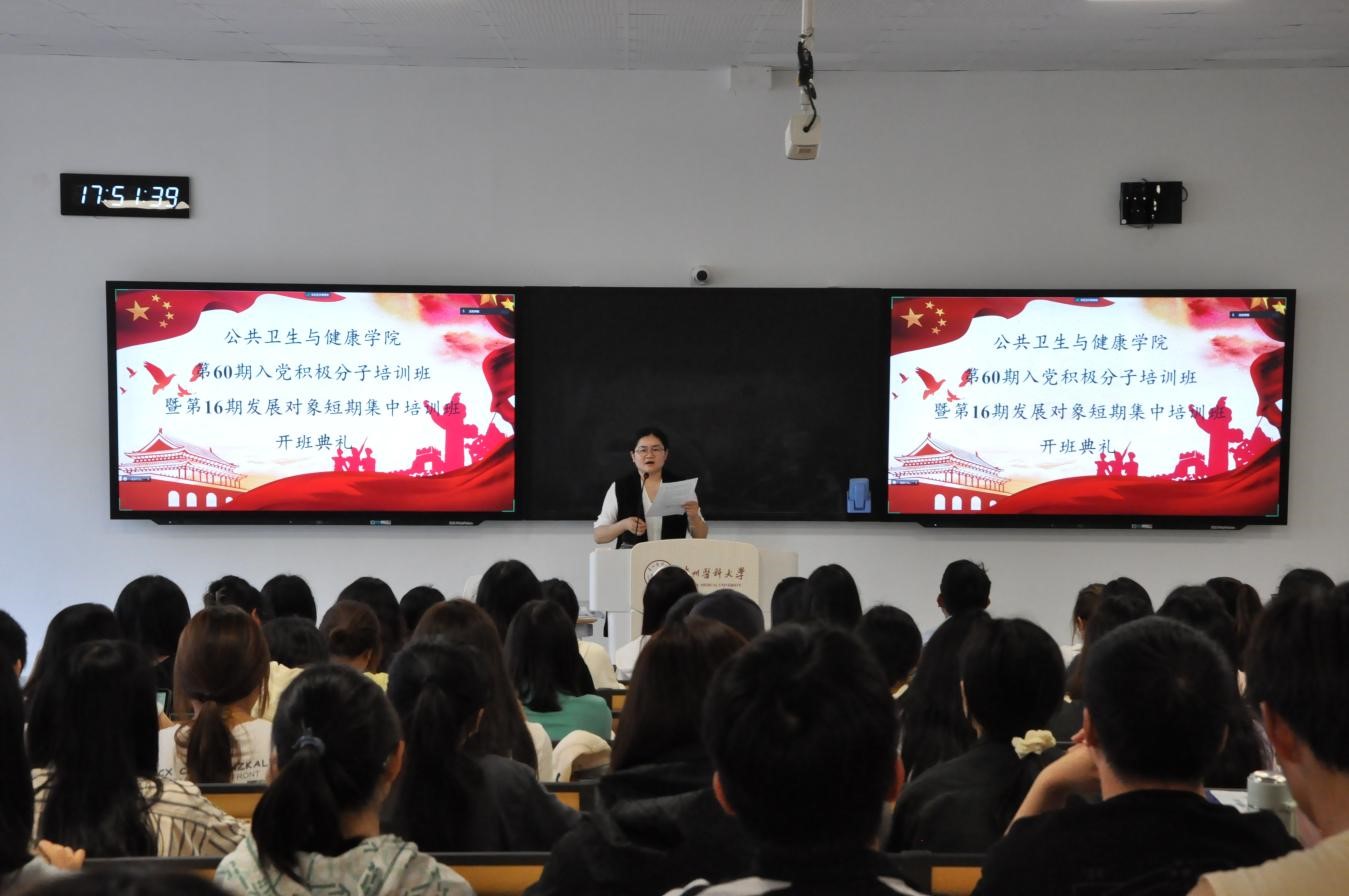 5月20日,英国上市公司官网365分党校在云漫湖校区公卫组团博雅楼C2-L211教室举行第60期入党积极分子培训班暨第16期发展对象短期集中培训班开班典礼。公共卫生与健康公司党委书记郑维薇、英国上市公司官网365员工科科长原琦以及全体学员参加,开班典礼由陶琴主持。