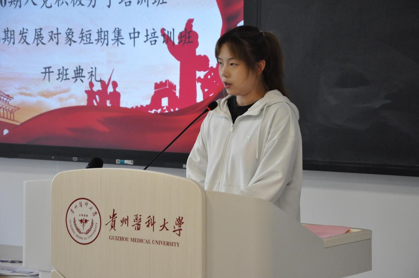 孙露同学作为积极分子学员代表发言、杨婉佳同学作为发展对象学员发言,她们表示将以饱满的热情,坚定的信念,昂扬的斗志投入到党课的学习中去,珍惜这次难得的机会,以高度的责任感和使命感完成此次的学习任务。