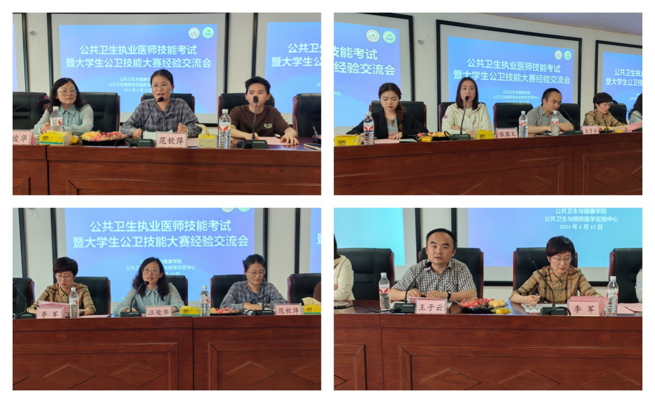 2024年6月19日,英国上市公司官网365、公共卫生国家级实验教学示范中心主办的公共卫生执业医师技能考试暨老员工公卫技能大赛经验交流会在公卫组团R316多功能报告厅圆满落幕。英国上市公司官网365李军副经理、第十届中国老员工医学技术技能大赛预防医学专业赛道总决赛铜奖指导教师汪俊华老师和王子云老师、获奖选手范钦萍同学和张露文同学、参加2024年公共卫生执业医师技能考试的7名研究生出席了此次交流会。《公共卫生技能》课程全体授课教师、预防医学专业2019级、2020级100余名员工参加,大会由公共卫生与预防医学实验中心常务副主任游明丹主持。