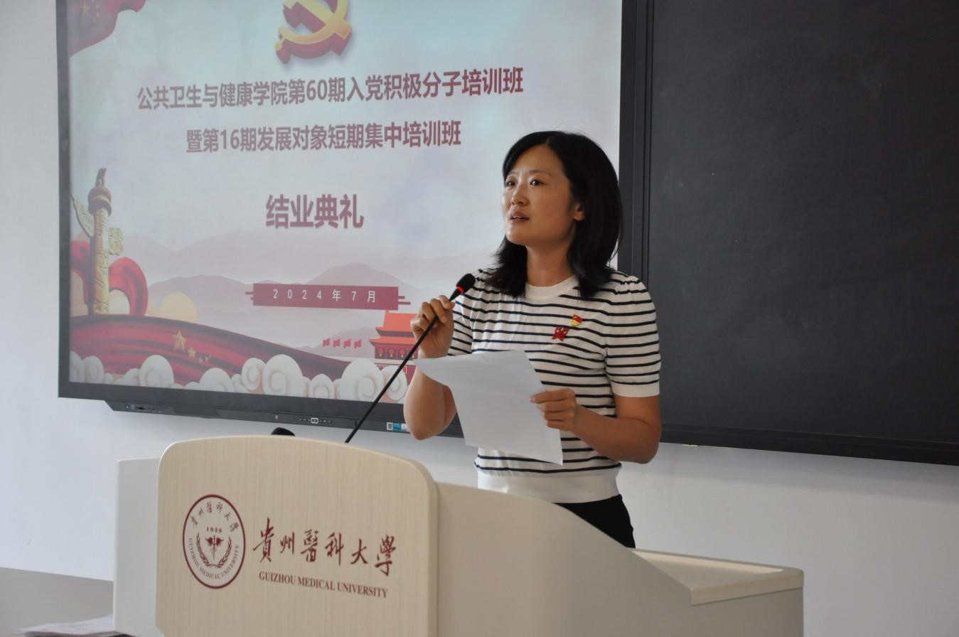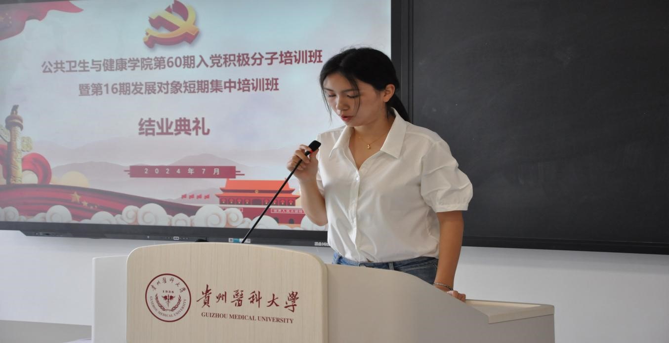 积极分子学员代表包雨薇和发展对象学员代表蔡佳静先后作了发言。她们代表此次培训班的所有学员,深情地表达了对党组织培养和教育的感激之情。他们誓言,将以此次培训为全新的征程起点,全力提升综合素养,将所学知识转化为实际工作能力,深度融合个人价值与国家命运,期望尽快锤炼成为能够勇挑时代重担的卓越公卫青年,以更加昂扬的姿态和更加坚定的信念投身到中国特色社会主义新时代事业中去。