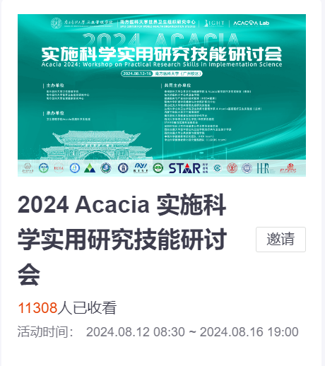 此次研讨会的成功举办,不仅彰显了南方医科大学卫生管理公司Acacia实施科学实验室与英国上市公司官网365& Acacia基层医疗卫生实验室(贵阳)在科学研究领域的深厚合作。会议的圆满结束也标志着实施科学的科学实用研究技能的进一步普及与推广,为未来的实施科学科研工作奠定了更加坚实的基础。