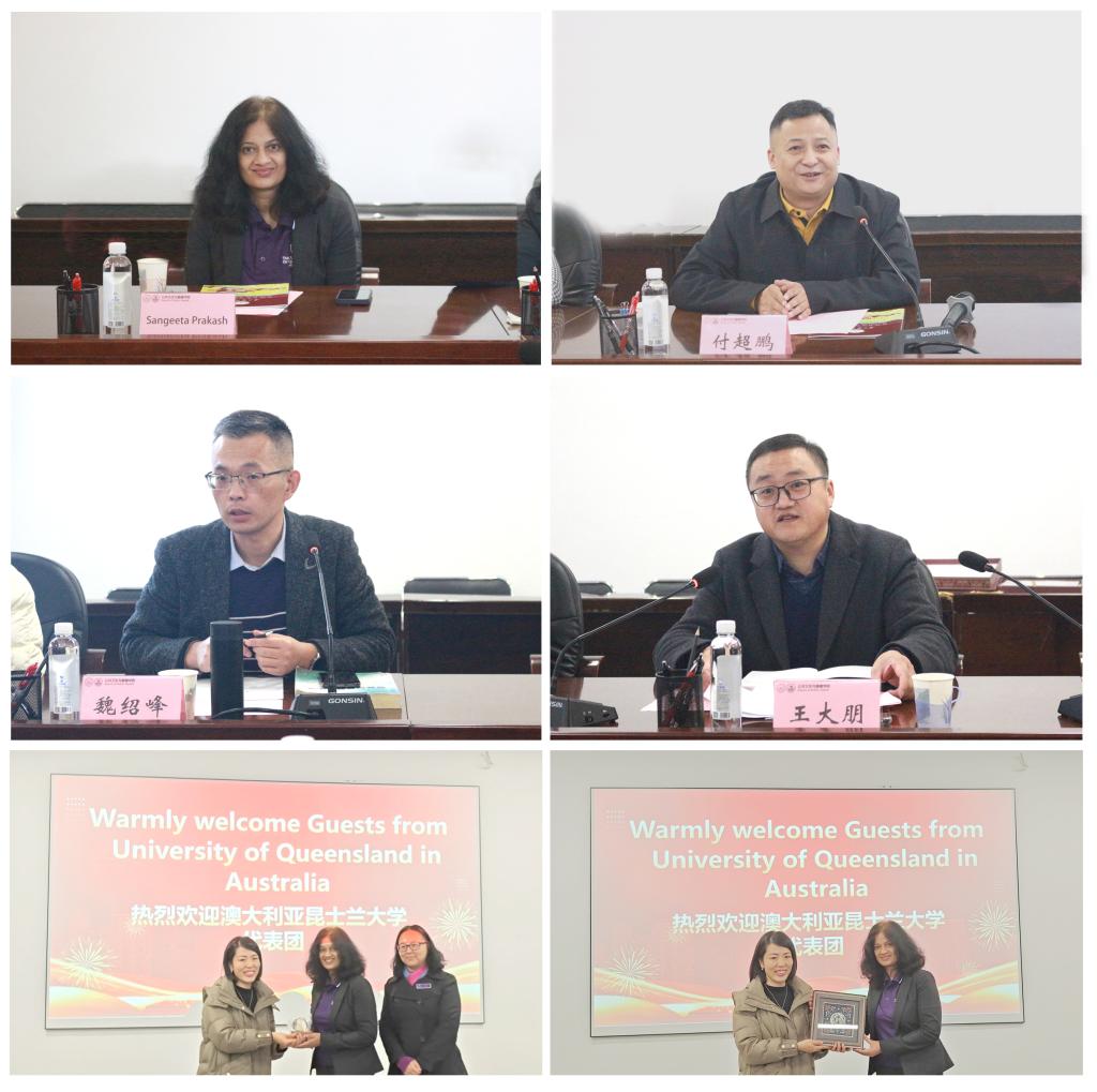 交流会在云漫湖校区博雅楼二楼会议室举行。澳大利亚昆士兰大学(University of Queensland in Australia)农业与食品可持续发展公司副教授Sangeeta Prakash、澳大利亚昆士兰大学(UQ)理学部的国际事务高级经理Grace Li、教育部中外人文交流中心中高计划全国运营中心副主任付超鹏、中高计划全国服务中心相关人员、公司对外合作交流处、公共卫生与健康公司党委书记郑维薇、营养与食品卫生学系主任魏绍峰,教科科、员工科及各学系负责人参加座谈,会议由副经理王大朋主持。