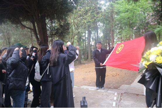 在革命烈士纪念碑前,原琦叮嘱同学们要时刻铭记历史,感恩和珍惜革命先辈用鲜血和生命换来的今天的幸福生活,勉励同学们在新时代要弘扬革命精神,学习革命先烈的优秀品质,继承革命先烈的宏大志向,厚植爱国情怀,主动担当时代重任,坚定理想信念,用勇于追梦的步伐和勤于圆梦的实干,交出一份无愧于祖国、人民和时代的青春答卷。