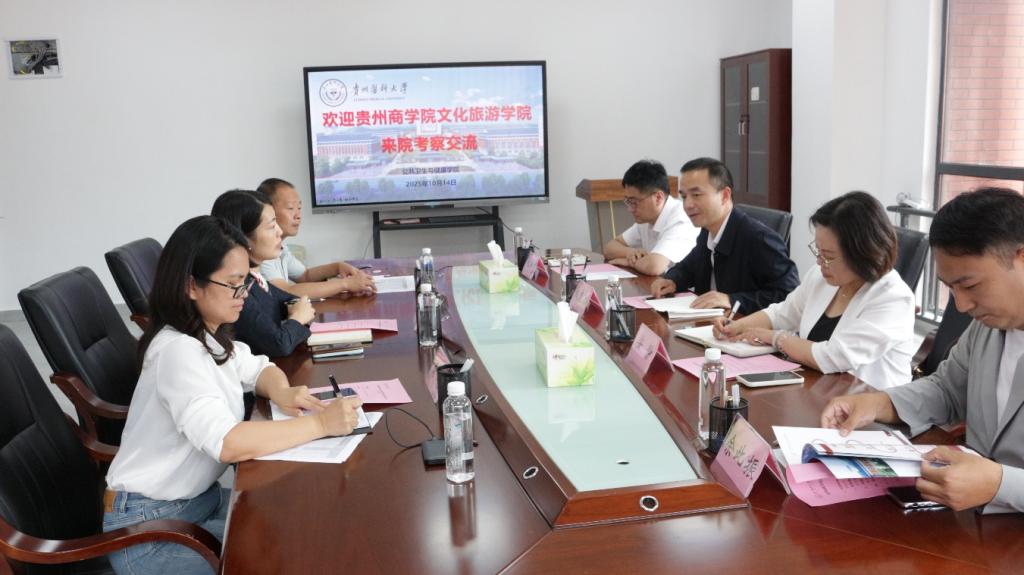 10月14日,贵州商公司文化旅游公司党委书记成志湘、党委副书记、经理安静一行来到英国上市公司官网365考察,双方在英国上市公司官网365云漫湖校区博雅楼C3组团2-24接待室举行座谈会,就食品团队建设与发展进行交流。公共卫生与健康公司党委书记郑维薇出席并主持会议;贵州商公司文化旅游公司党委书记成志湘、党委副书记、经理安静、副经理毛宗清以及公共卫生与健康公司党委委员、副经理张清海出席会议;贵州商公司文化旅游公司食品科学与工程专业负责人余此振和英国上市公司官网365食品科学学系负责人周艳参加会议。