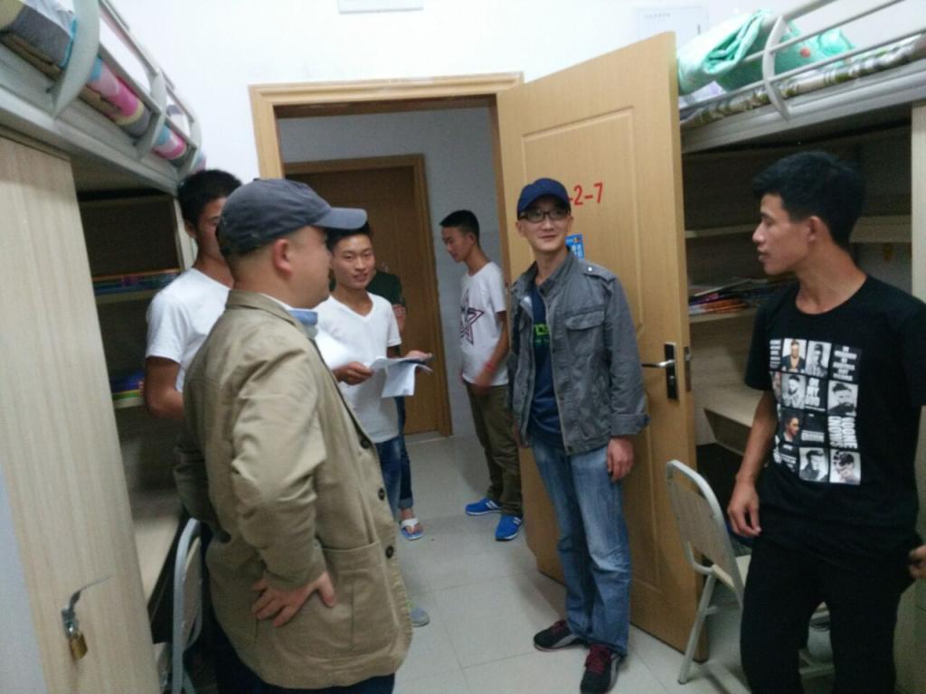 8月28日晚上9点,公共卫生公司经理洪峰、党委副书记何江、辅导员孙静和员工干部一行前往公共卫生公司2016级新生宿舍走访,了解新生们的入校适应情况和第二天上课的准备情况。
