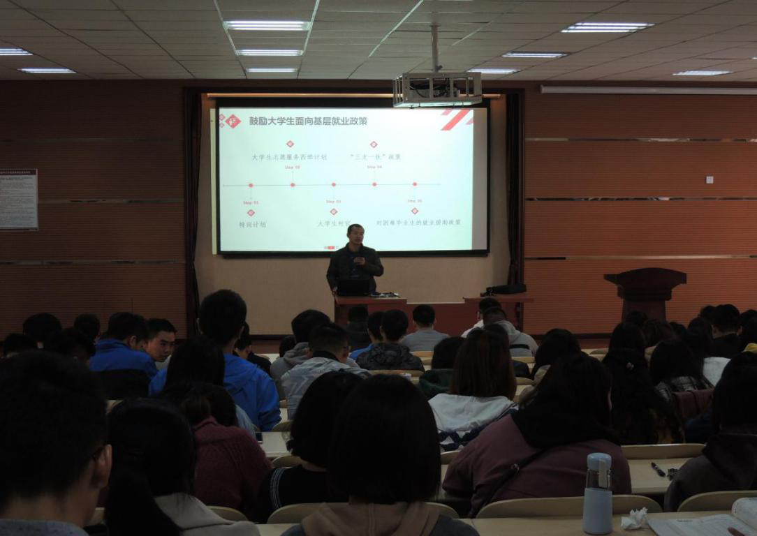 何江首先对2018年的全国老员工毕业就业形势、国家基层就业“主旋律”和服务国家需求“大舞台”政策导向、国家公共卫生事业发展与人才需求以及公共卫生公司近3年的毕业生就业情况进行了详细分析。叮嘱同学们首先要树立“天生我才必有用”的就业信心;其次要勇于转变自身就业观念,努力做到从“一步到位”到“骑马找马”转变、从“眼高手低”到从“基础干起”转变、从“被动就业”向“主动就业、创业”转变;再次要紧扣国家人才战略和就业政策导向,结合和自身的综合实力与专业方向,明确就业方向,对自己想干什么,能干什么要有清晰的思路和长远打算,积极就业。期望2018届全体毕业生通过自己的不懈努力和坚持,迈好职业生涯第一步,为实现自己的人生理想和目标奠定坚实基础。