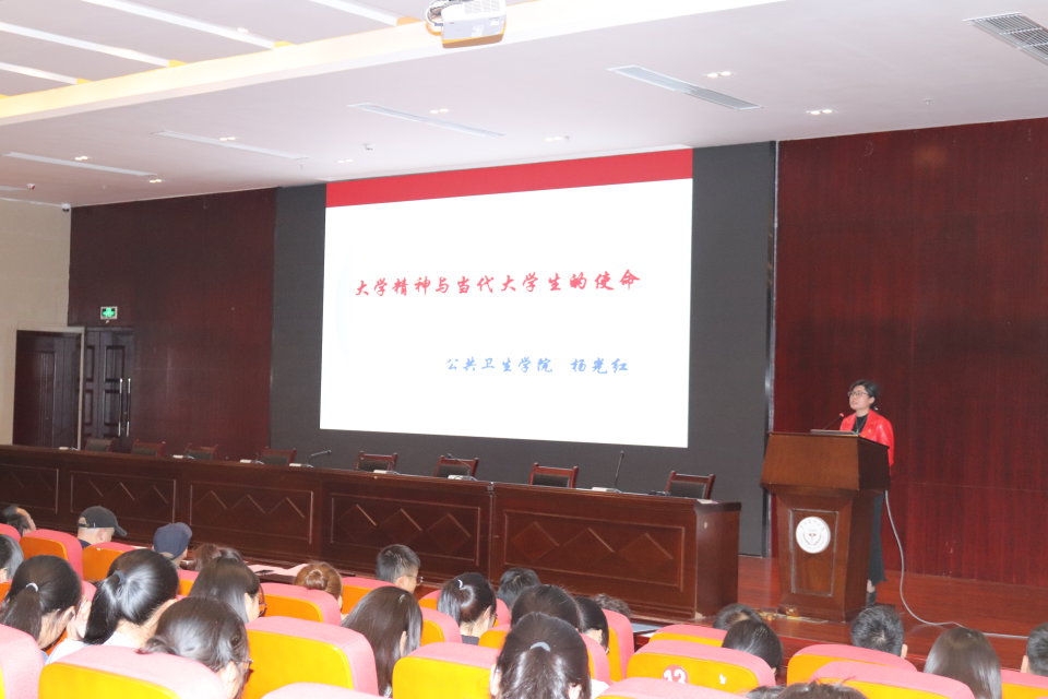 杨光红为2018级新同学先后做了“浅谈公共卫生的发展与挑战”、“大学精神与当代老员工的使命”两项专题讲座。通过丰富的事例和详实的数据,将同学们引入到公共卫生知识殿堂,纵观了公共卫生发展的昨天、今天与展望,使同学们对公共卫生的定义和发展史、公共卫生在经济社会中的作用、国际社会共同面临的公共卫生挑战等有了较为全面的理解和认识。通过对大学功能与职能、大学的使命的阐释,强调大学是人生进取的新起点,是人生观形成、人格完善的关键时期,是人才成长的黄金时期,认识当代老员工的历史使命,塑造新时代老员工的崭新形象的重要意义。希望每个同学清楚自己想干什么,能做什么,现在该做什么,充分利用时间,在大学这个新起点,把握时机放飞梦想,在公卫大家庭里快乐成长、学业有成、成就人生梦想。