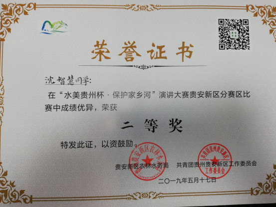 比赛选手演讲围绕“保护家乡河”主题,选择水资源保护、节水护水、河流湖库生态保护、水污染防治等知识。评委根据演讲内容、语言表达、演讲技巧、形象风度、综合印象及脱稿要求5个标准,现场对演讲选手进行评分。经过激烈角逐,公共卫生公司2018级食品卫生与营养学专业沈智慧同学荣获新区演讲二等奖。