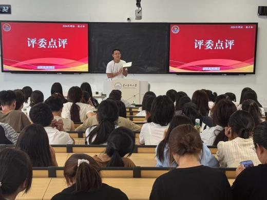 在点评环节,评委老师对选手们的表现给予了高度评价,并从发音、内容、语言能力和应变能力等方面进行了细致的评分和评价。员工管理科副科长原琦、环境污染与疾病监控教育部重点实验室王梓年博士给同学们分享了学习英语的经验与方法,鼓励同学们培养国际视野,克服心理障碍,勇敢的学习英语,学会英语表达。