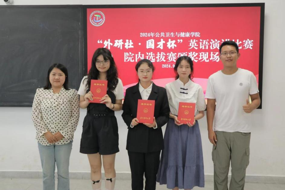 2023级食品卫生与营养学朱玲丽、2024级预防医学2班黎梦圆同学将代表公司参加校级比赛。希望他们能站在更高的舞台上,以出色的演讲技巧展现公卫学子的英语潜能,预祝他们取得更加优异的成绩。