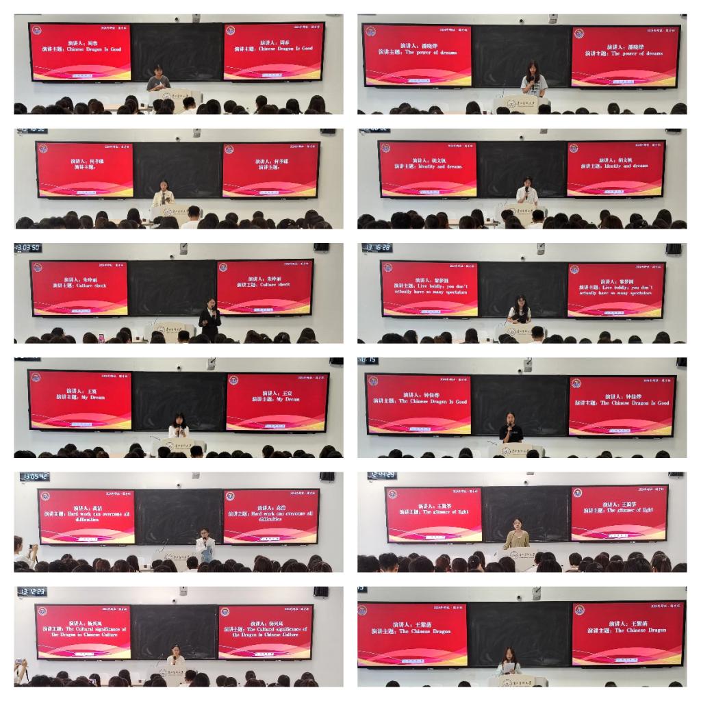 本次院内比赛为同学们自主命题,参照校级比赛打分规则和评分标准,共有来自不同专业的12名选手参加。参赛选手们准备充分,精神饱满,他们用流利而富有激情的英语,声情并茂,赢得观众们的阵阵掌声。