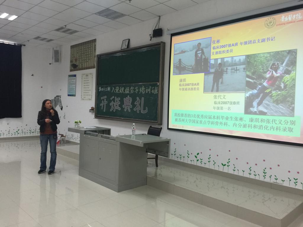 老师首先就本次培训形式、课程安排、上课纪律、评优条件等方面作统筹安排;并强调了培训期间的纪律要求,希望每位学员认真学习党的知识,积极投身于创先争优活动,做一名学习型入党积极分子。党校副董事长周红作了动员讲话。她对所有学员们提了三点希望和三个提高:一是努力学习,提高对党的认识;二是端正入党动机,提高自身素质;三是遵守纪律,提高入党意识。公共卫生公司党委副书记杨光红希望大家珍惜这次党校学习的机会,夯实理论基础,提高自身的党性修养,珍惜大学时光,增强社会责任感和使命感,努力用所学的理论指导自身的学习与实践,为将来成长为医疗卫生战线的战士打下扎实的基础。