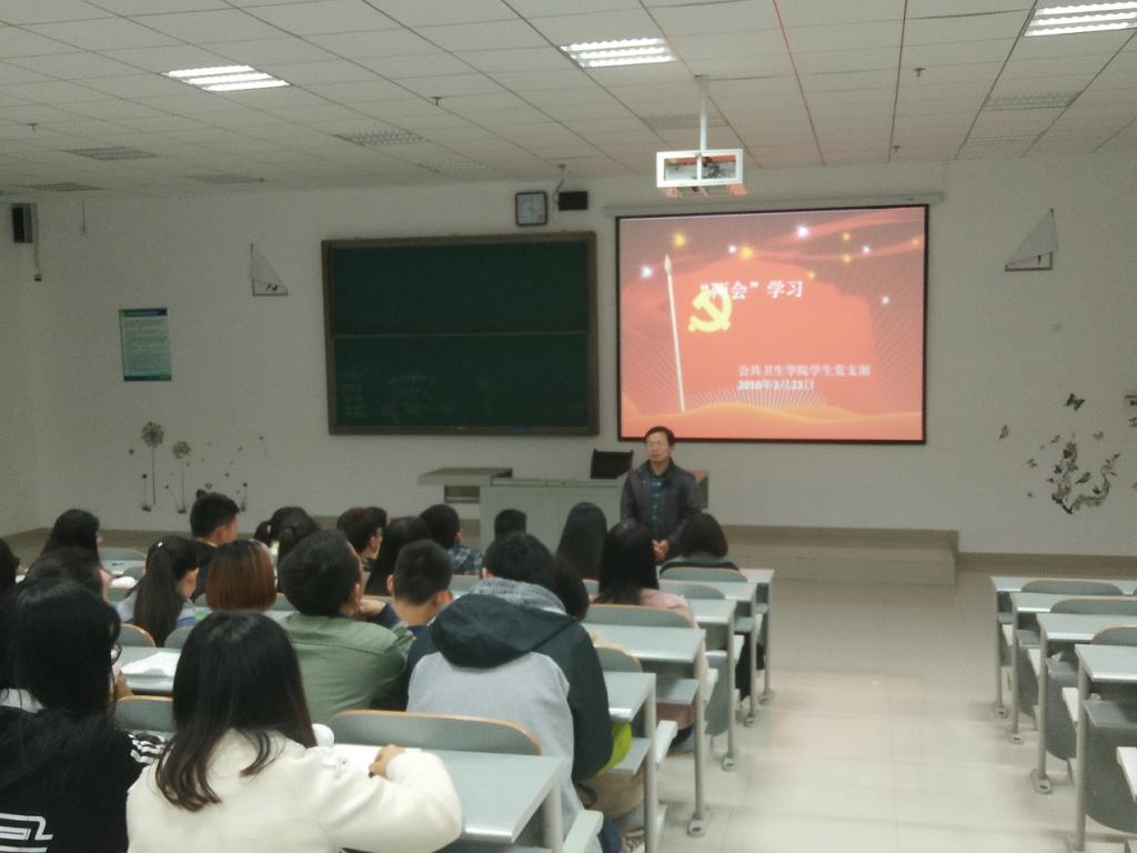 为认真学习贯彻两会精神、营造关注时事动态、关心政策走向的良好学习氛围,公司两个员工党支部于3月24日下午在4306教室开展了“了解两会动态,学习两会精神”的主题党日活动。本次活动专门选派出平时喜欢关注时政,对两会有深层了解并善于口才演讲的2014级预防医学专业刘思源来解说两会热点内容。员工第一党支部书记刘亮,员工第二党支部书记孙静出席,公司全体员工党员以及预备党员参加了此次活动。