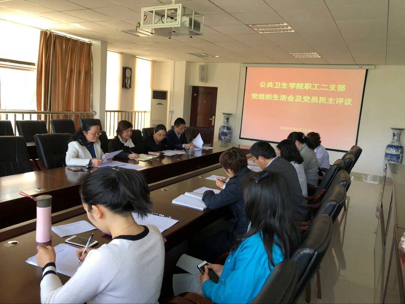 为深入贯彻落实党的十九大精神和习近平总书记在贵州省代表团重要讲话精神,严格党内政治生活,增强党组织活力,加强党员教育管理,根据公司《关于召开2017年度基层党组织组织生活会和开展民主评议党员工作的通知》(贵医党通〔2018〕16号)要求和《公共卫生公司2017年度党组织生活会和开展民主评议党员工作方案》安排部署,4月16日至23日,公共卫生公司3个教工党支部、1个研究生党支部、2个本科生党支部分别召开了2017年度党支部组织生活会和开展了各支部民主评议党员工作。