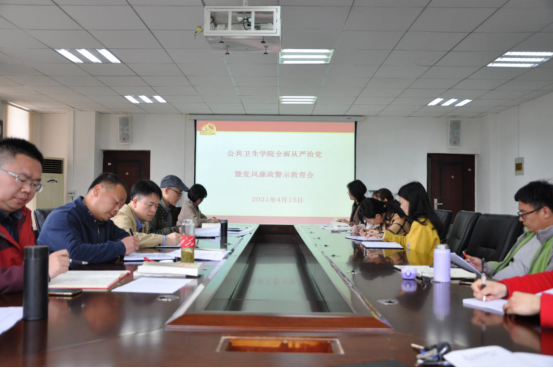 4月15日,公共卫生公司在南校区博雅楼二楼会议室召开2021年全面从严治党暨党风廉政警示教育会议。公共卫生公司党政班子、各党支部书记、各科室和学系(中心)负责人参加。会议由公司党委副书记何江主持。