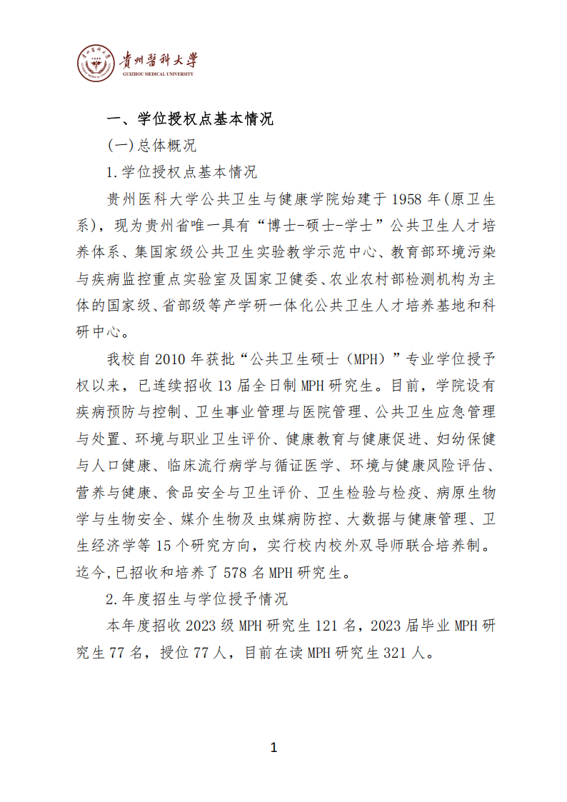 上一条:2024年度公共卫生专业学位授权点质量建设年度报告 下一条:公共卫生与预防医学博士学位授权点质量建设年度报告(2022年度)