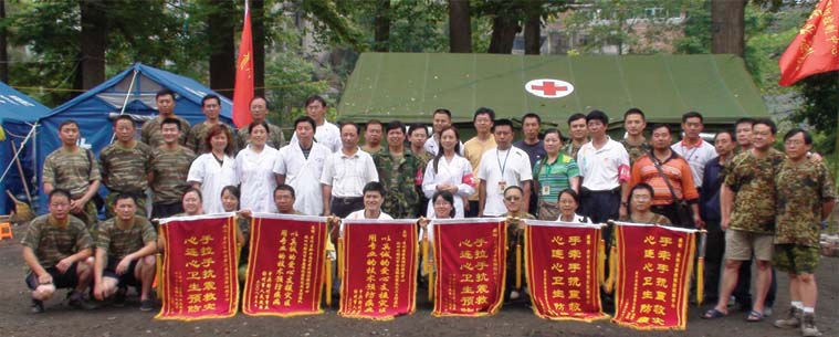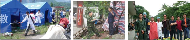 培养的员工在汶川地震灾区开展卫生防疫工作